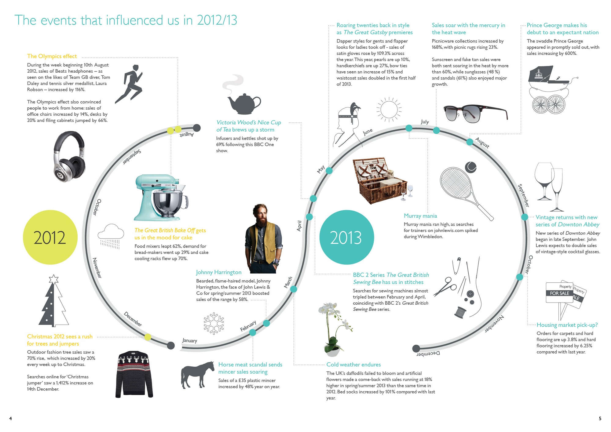 The Great British Bake Off, The Olympics and the royal baby were some of the big events that spurred sales at John Lewis in the last year.