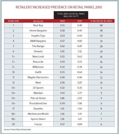 • Discounters Retailers such as Home Bargains, B&M Bargains and Poundland are all using retail parks as one of their growth channels – yet their presence on parks was negligible just five years ago