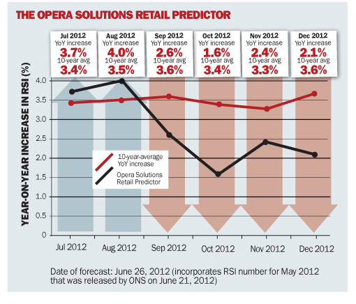 The latest forecasts follow last week’s official retail sales data from the ONS, which showed year-on-year growth in May, including fuel, of 3.3% by value. Opera had forecast 3.1%.